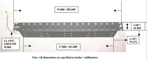 - 16-ports across with single-point grounding using only 1U of 19.0” vertical rack space. May be front panel screw grounded or grounded using Bravo supplied 9.0” long 12 AWG ground wire